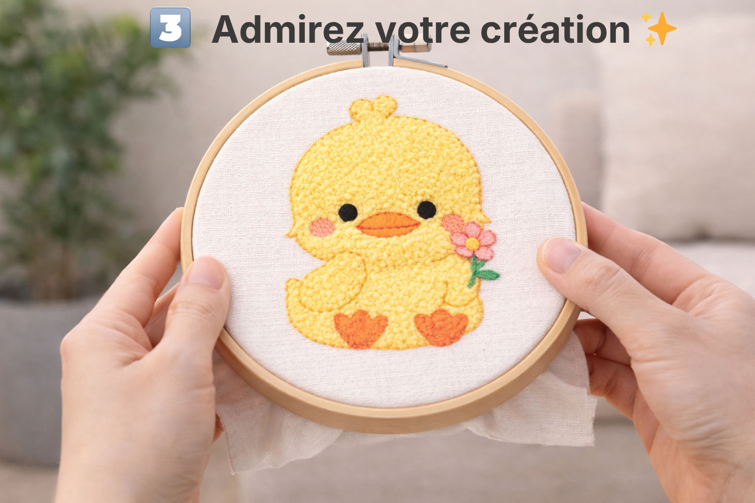 Suivez le motif pré-imprimé, choisissez vos fils et laissez votre création prendre forme progressivement.
