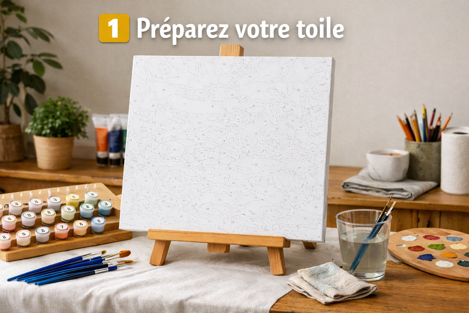 Peinture acrylique prête à l’emploi, numérotée pour correspondre aux zones de la toile.