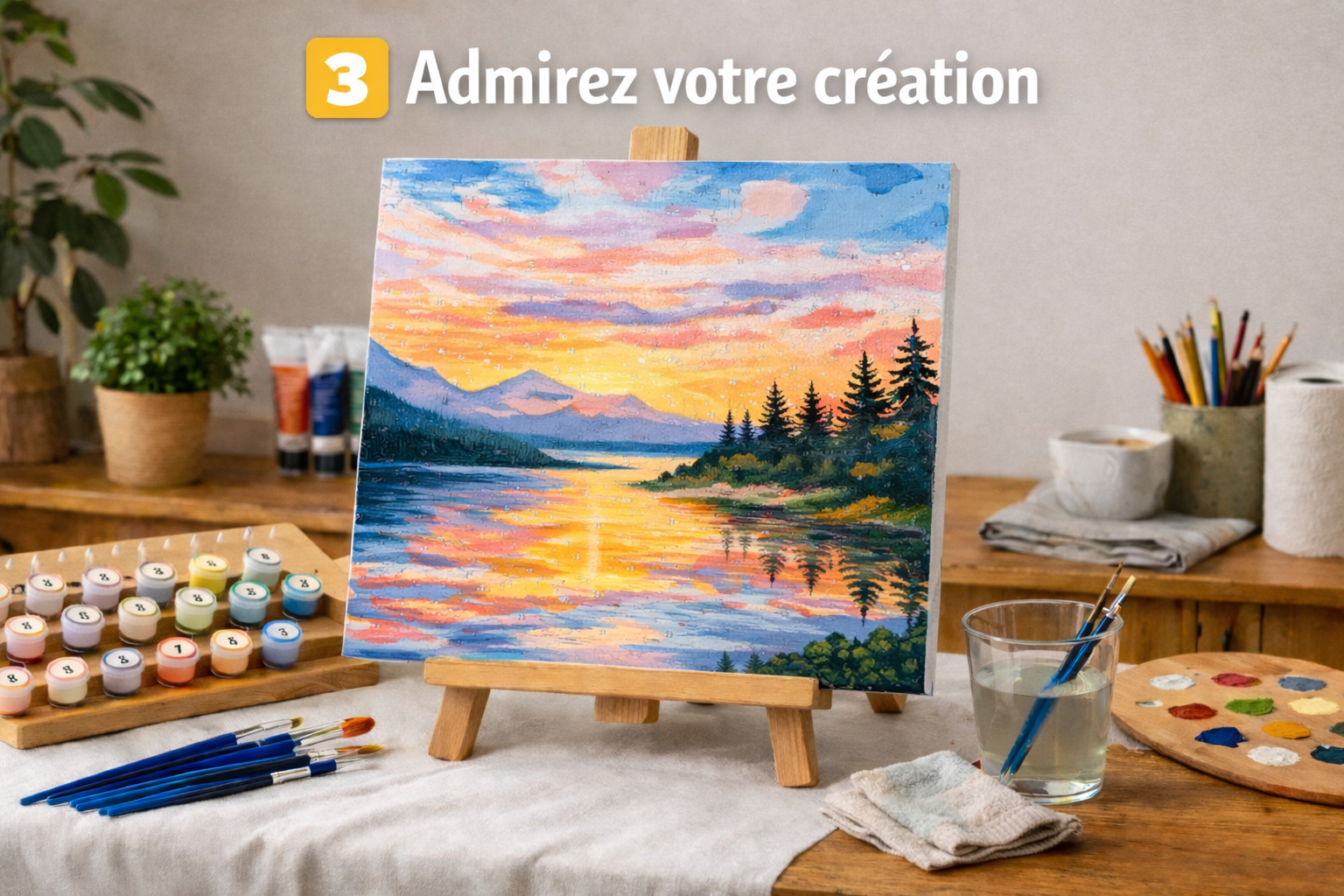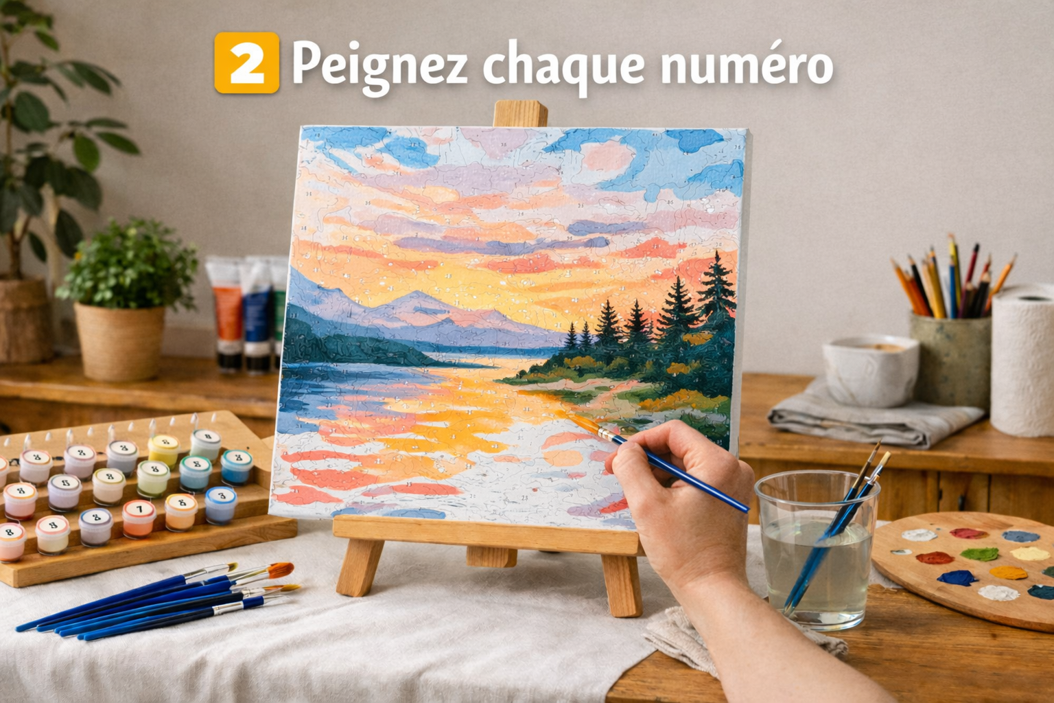 Chaque zone de la toile correspond à un numéro et une couleur. En peignant progressivement, vous réalisez votre œuvre étape par étape.