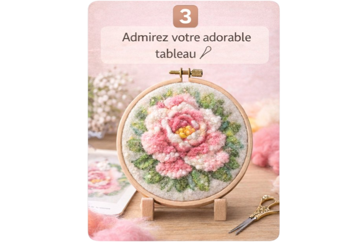 Accessible aux débutants comme aux passionnés de loisirs créatifs, ce kit vous permet de réaliser une décoration douce et élégante, à créer de vos propres mains.